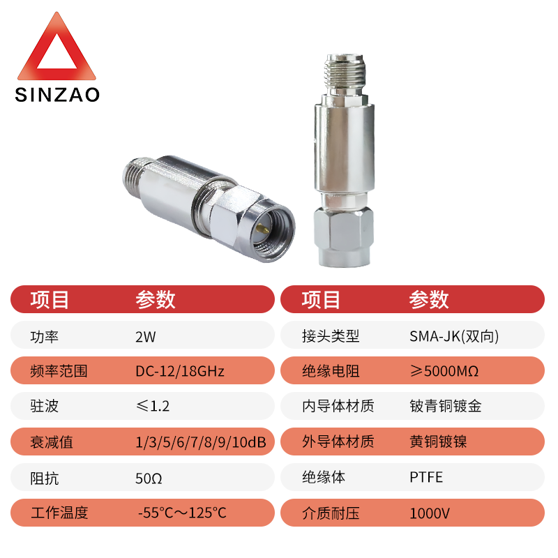新凿射频固定衰减器2W-SMA-JK
