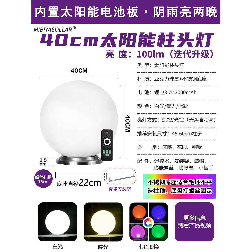 阳能柱头灯圆形大柱子灯别户太墅庭院外墙灯门外防水球形MIYABISO