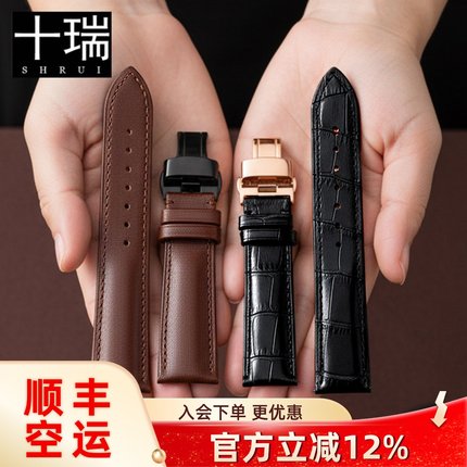 十瑞表带适用华为美度浪琴天王依波西铁城卡西欧天梭男女牛皮表带