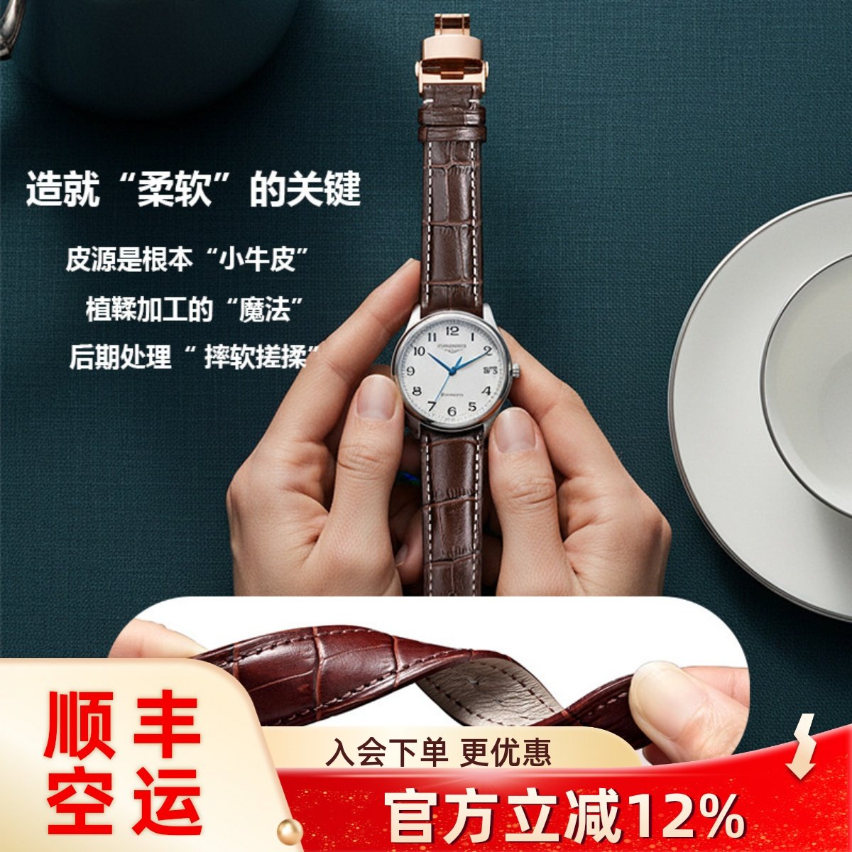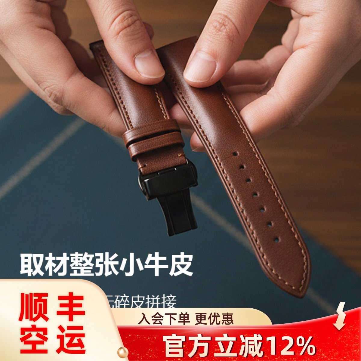 十瑞手表带男女通用牛皮表带