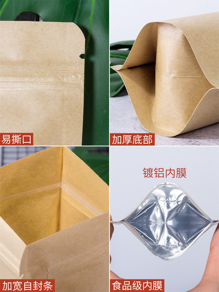 牛皮纸袋自封口食品包装袋子加厚自立干果茶叶瓜子密封袋小号定制