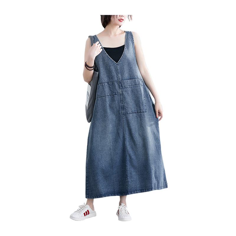 减龄背带裙女大码夏装胖妹妹宽松200斤显瘦V领无袖吊带牛仔连衣裙