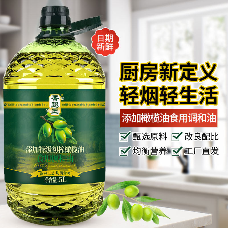 香飚王添加橄榄油食用调和油5L大桶家用食用油官方旗舰店正品