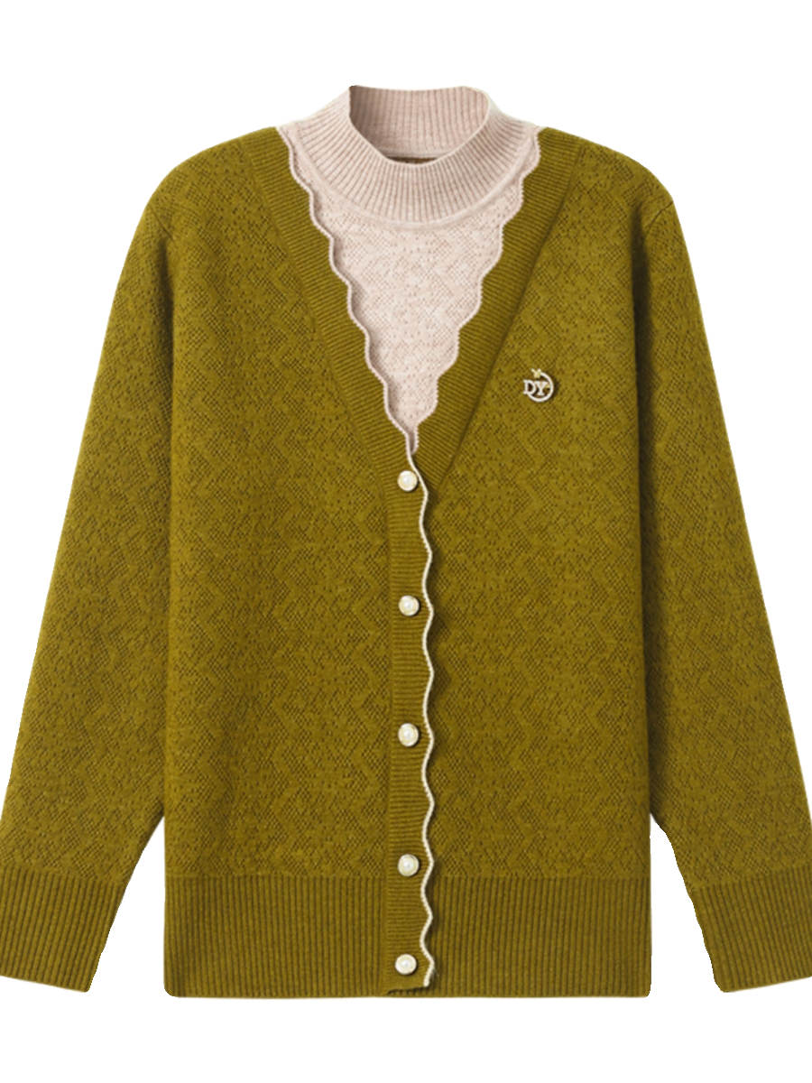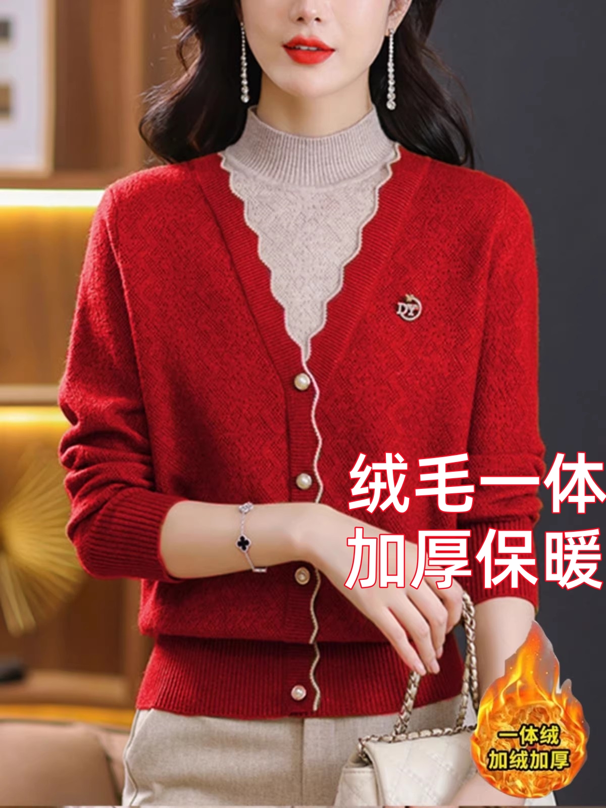 2025年新款假两件女装秋冬季新款加绒加厚保暖毛衣短款针织打底衫