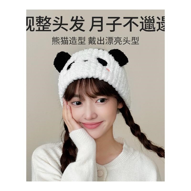 现货速发月子帽秋冬云朵绒加绒加厚熊猫头巾月子产后春秋保暖毛绒