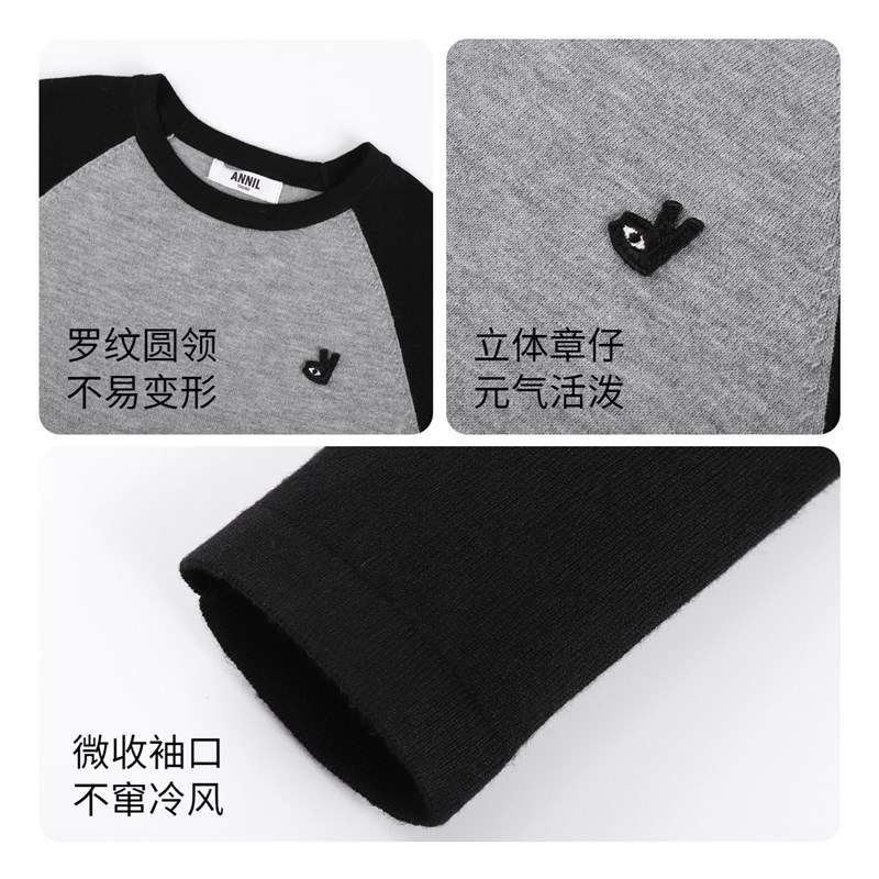 安奈儿男女童装圆领长袖针织衫羊毛衫2023冬新款插肩袖休闲打底衫