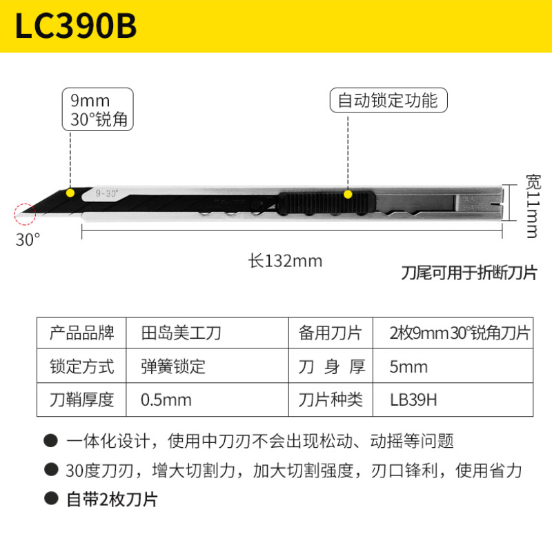 日本田岛美工刀 壁纸刀30度锐角小号9mm贴膜刀架专用工业用LC-390