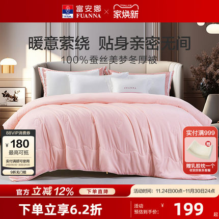 富安娜被子100%蚕丝被四季被子母被二合一儿童被芯双人冬厚被床品