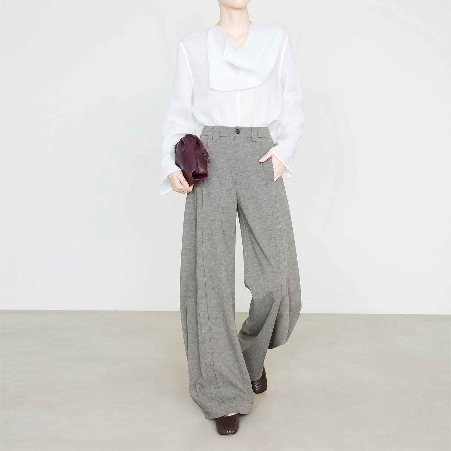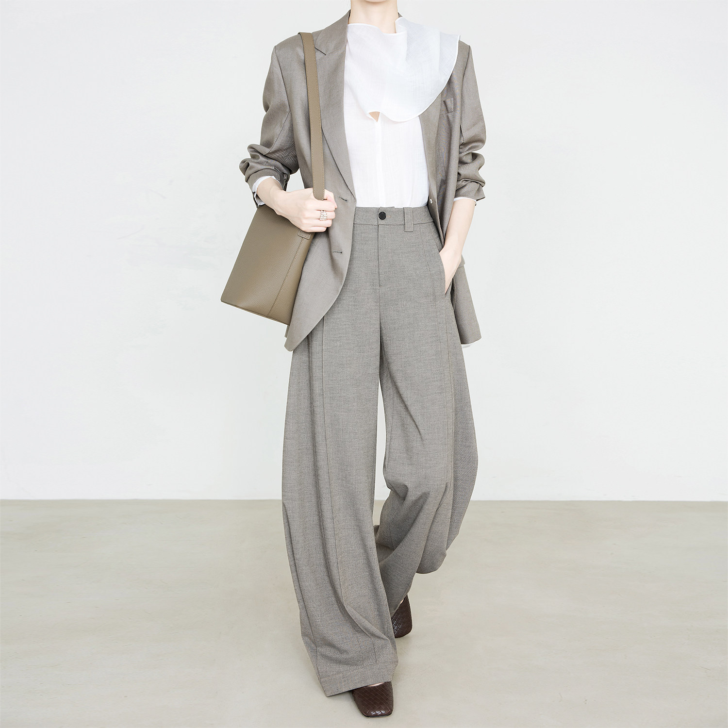 夏莫卡解构主义立体捏褶廓形裤春新款时髦轻通勤燕麦色西装裤9772
