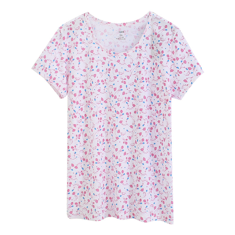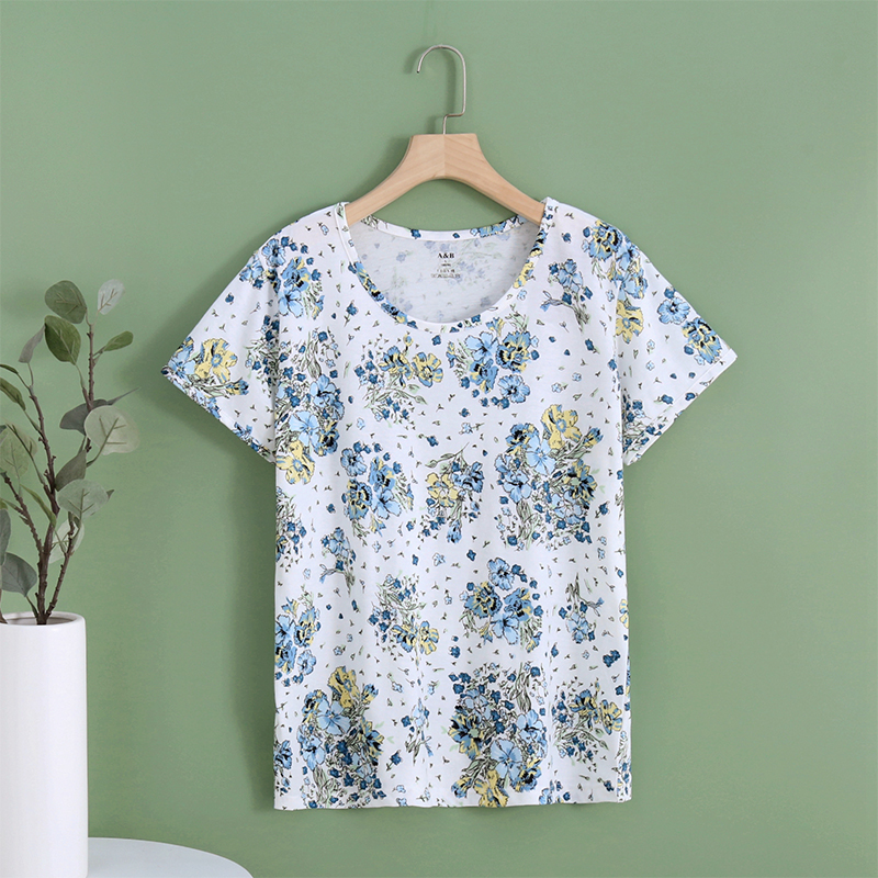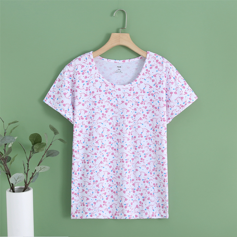 AB内衣中老年妈妈圆领贴身宽松纯棉汗衫女印花短袖背心家居服睡衣