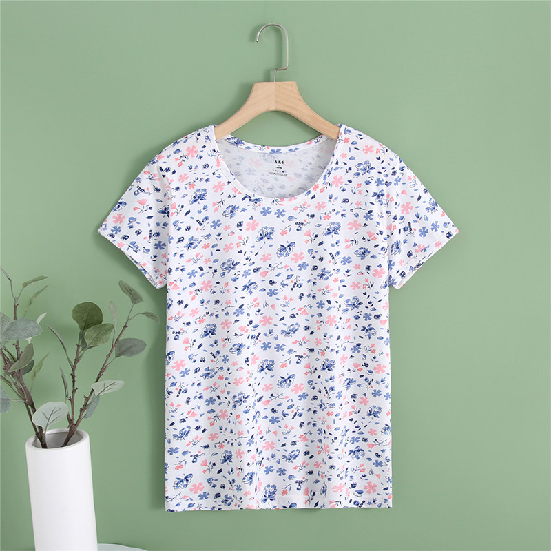 A&B圆领纯棉短袖宽松女汗衫