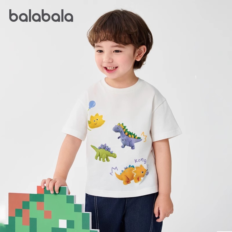 巴拉巴拉童装宝宝短袖T恤吸湿速干纯棉上衣男童女童夏季新款恐龙