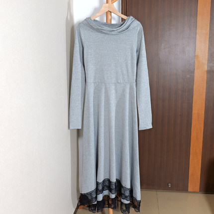 2025年秋款新品女装纯色蕾丝拼接中长款长袖连帽修身连衣裙子时尚