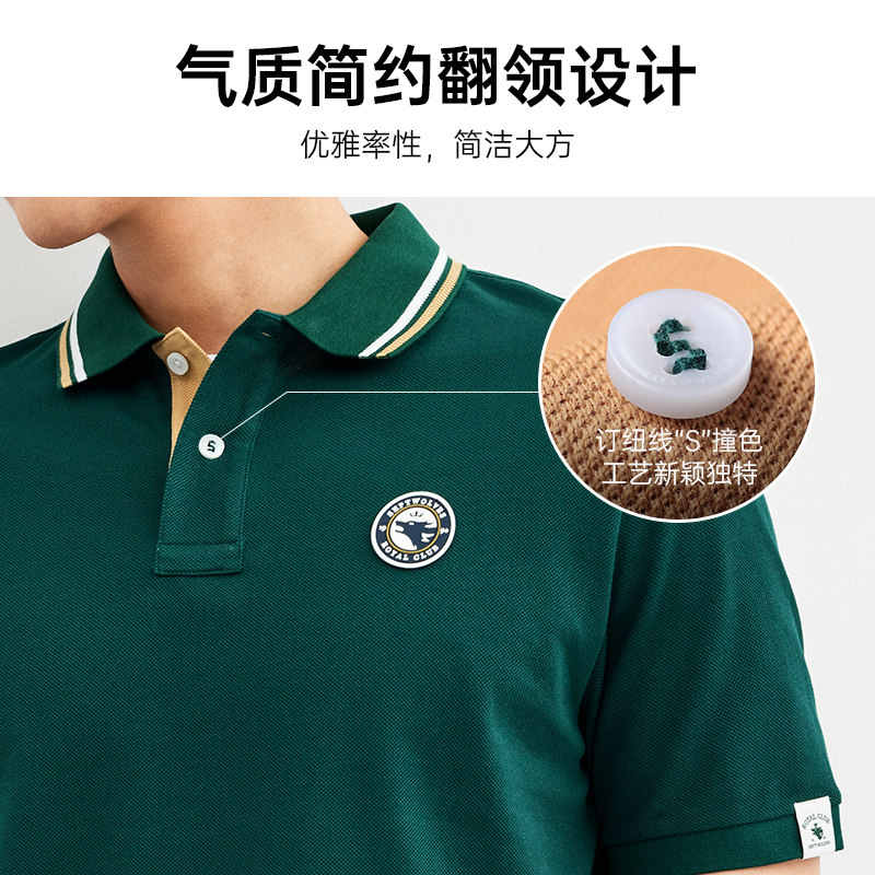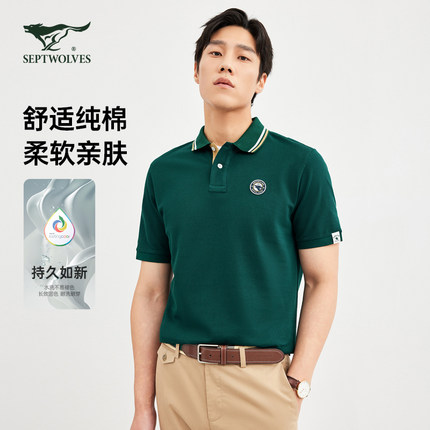 七匹狼翻领净色短袖T恤舒适纯棉吸湿透气商务POLO衫耐穿上衣男装