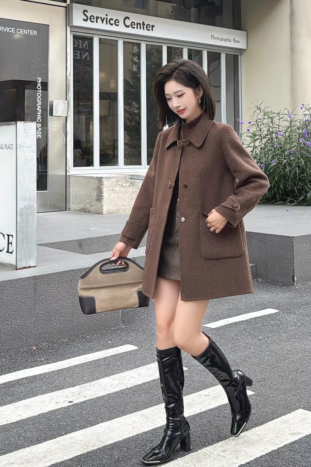 2025秋冬新款大红羊绒大衣女中长款韩版宽松翻领羊毛呢子外套