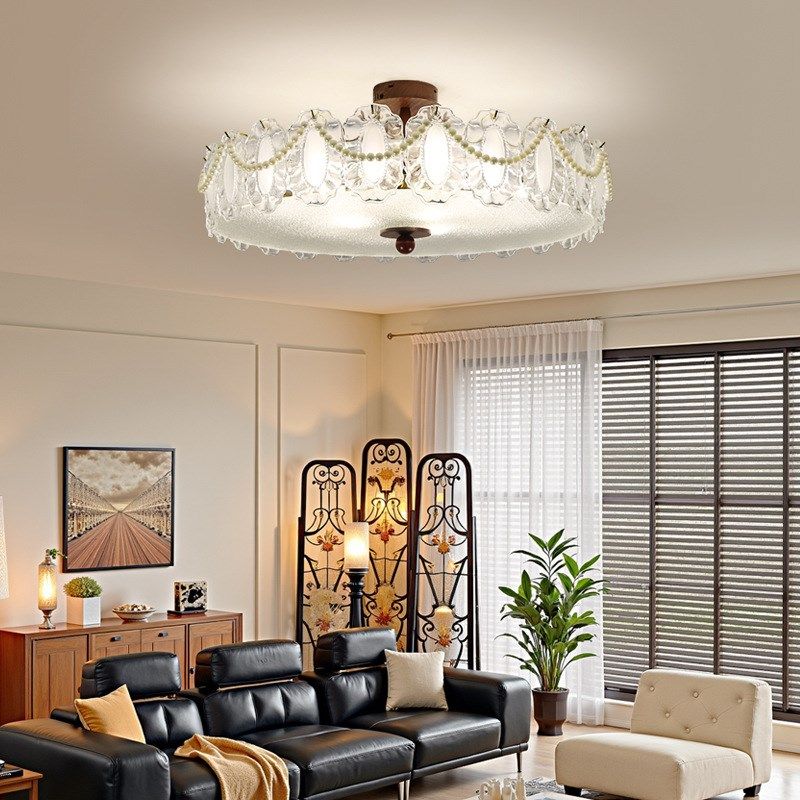 中古风餐厅珍珠吊灯法式轻t奢水晶玻璃灯具主卧客厅吸顶灯casagd