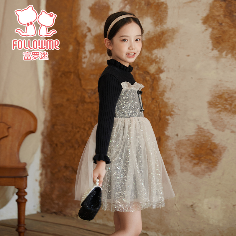 富罗迷女童连衣裙儿童装2024新款冬季洋气时髦女孩加厚公主针织裙