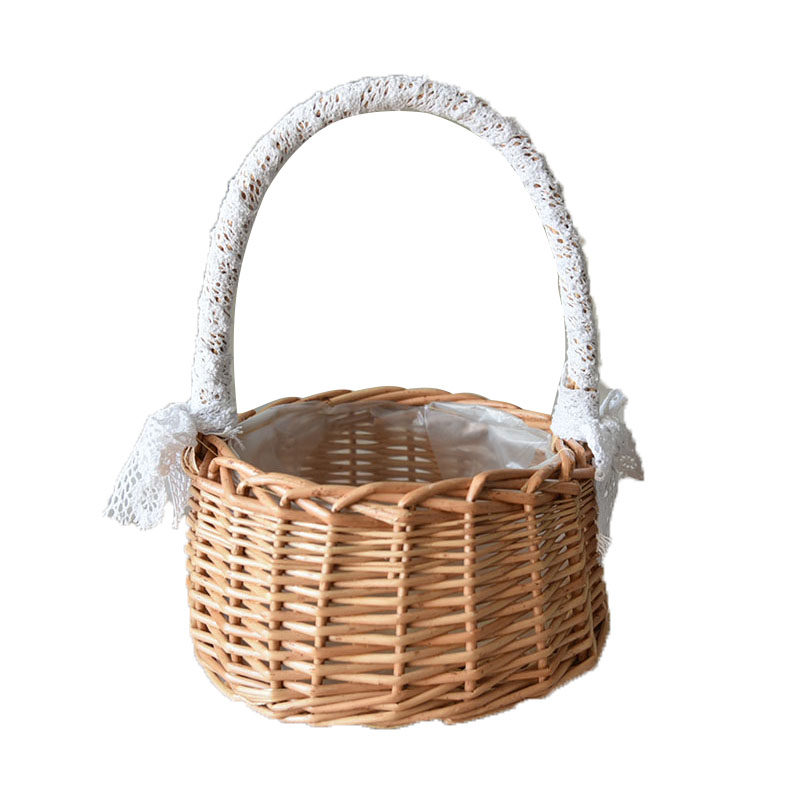 花篮编织藤编花边公主花童手提篮圆形花艺插花花盆鲜花花篮手提