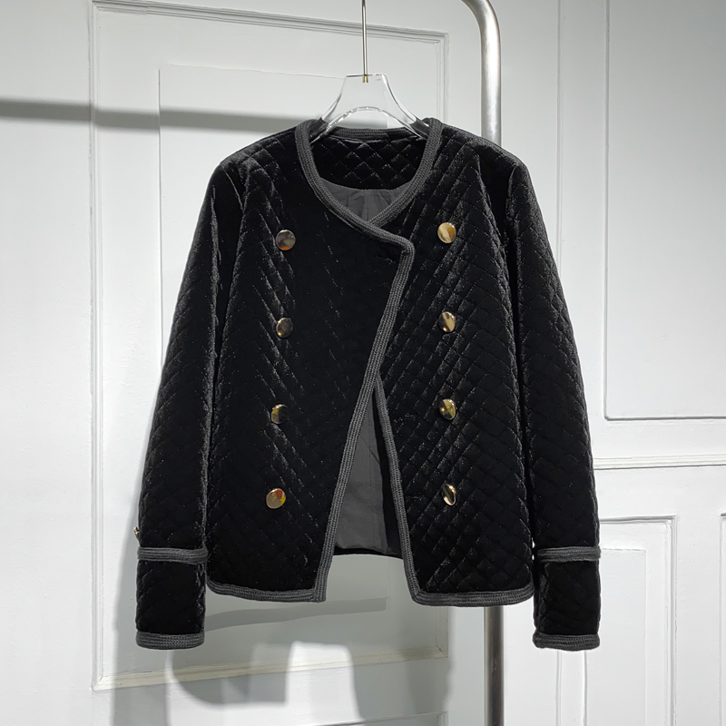 时尚丝绒菱格棉服女2023冬新款通勤气质修身显瘦纯色短款西装外套