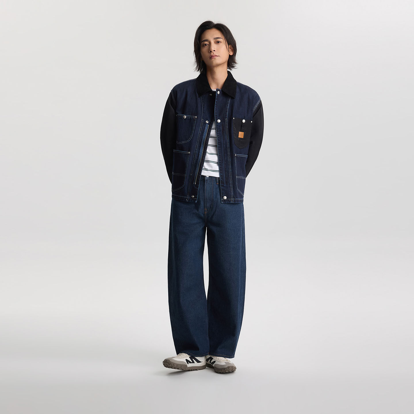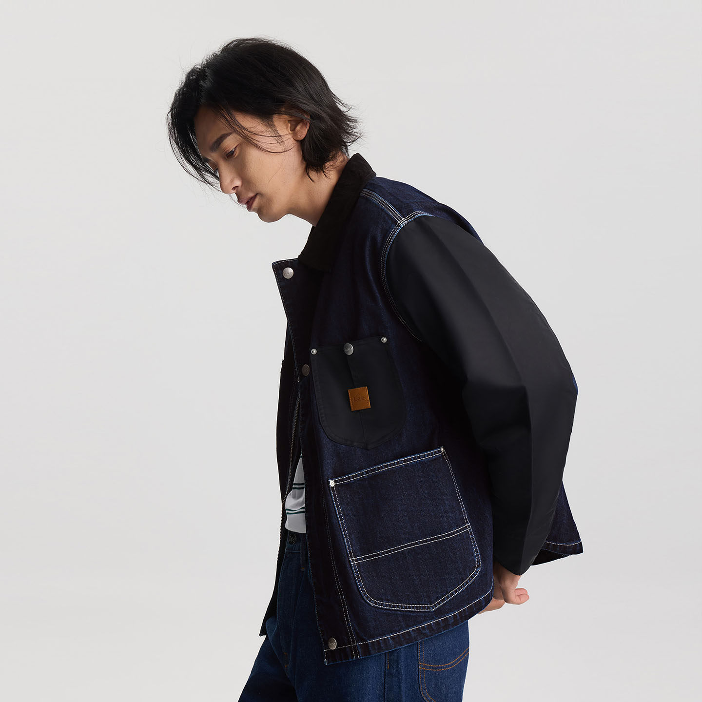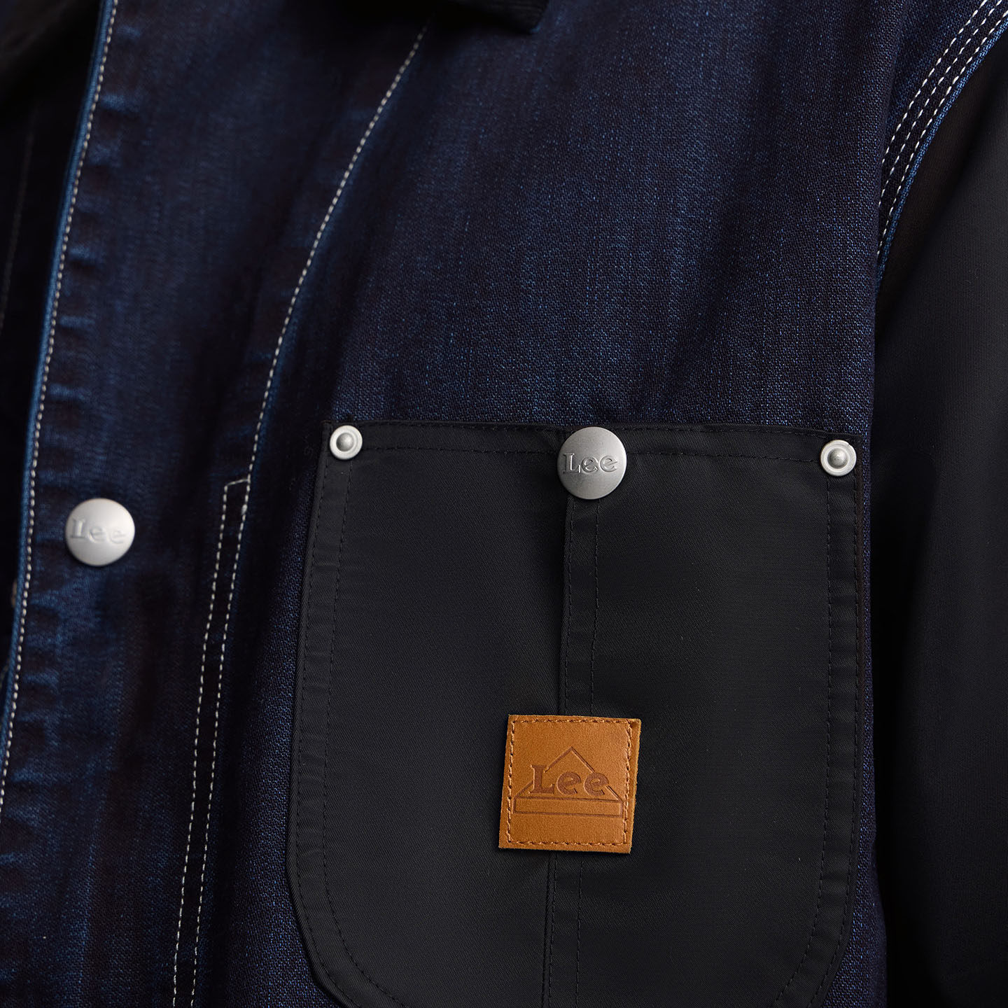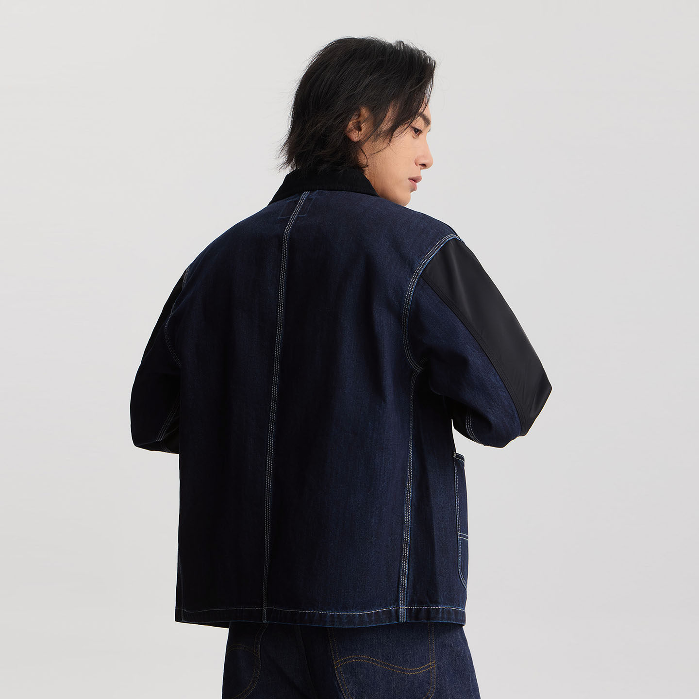 Lee商场同款26年春新舒适版灯芯绒翻领拼接设计91J工装夹克深蓝男