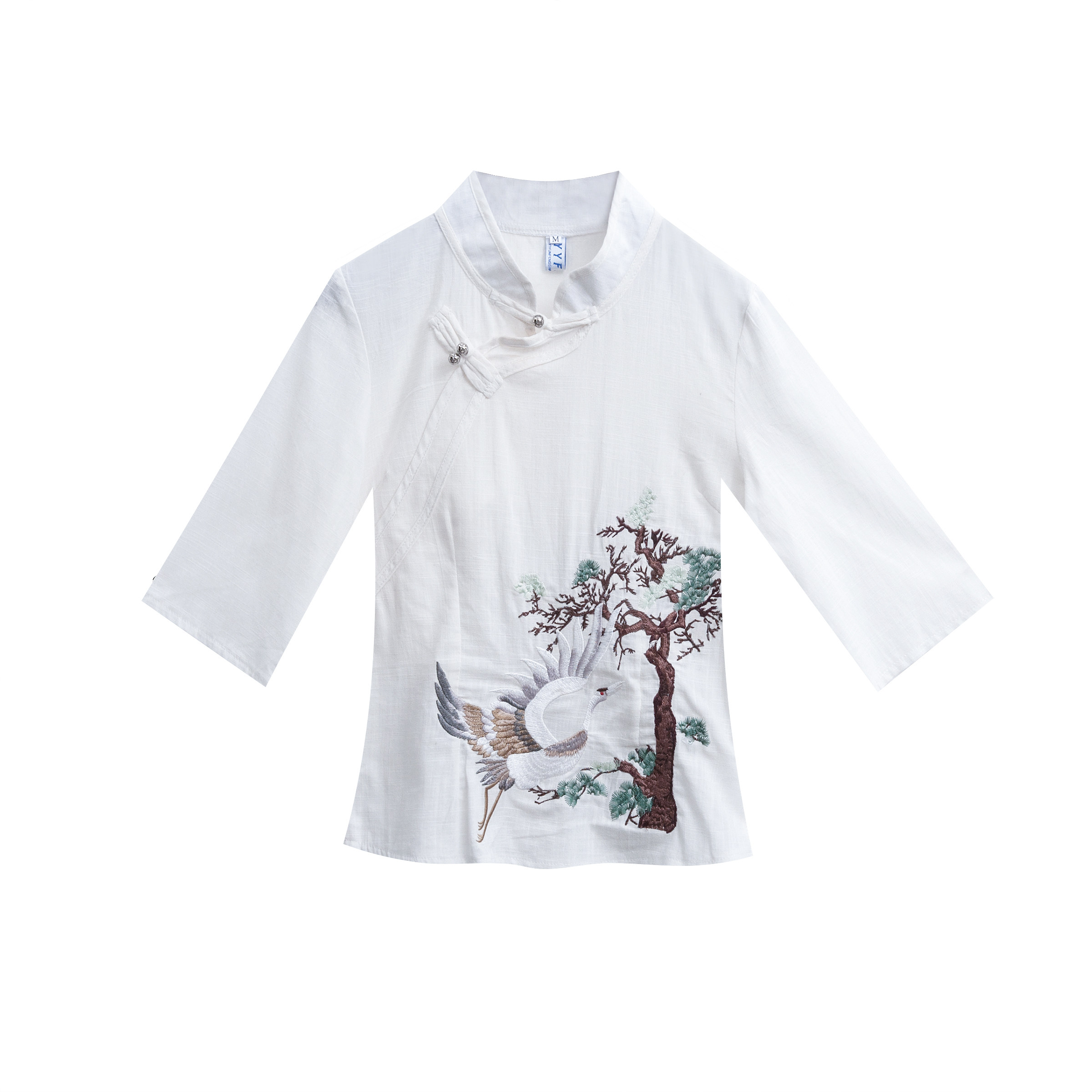 特价民族风大码棉麻上衣 刺绣花年轻款中式短款T恤中国风禅意茶服