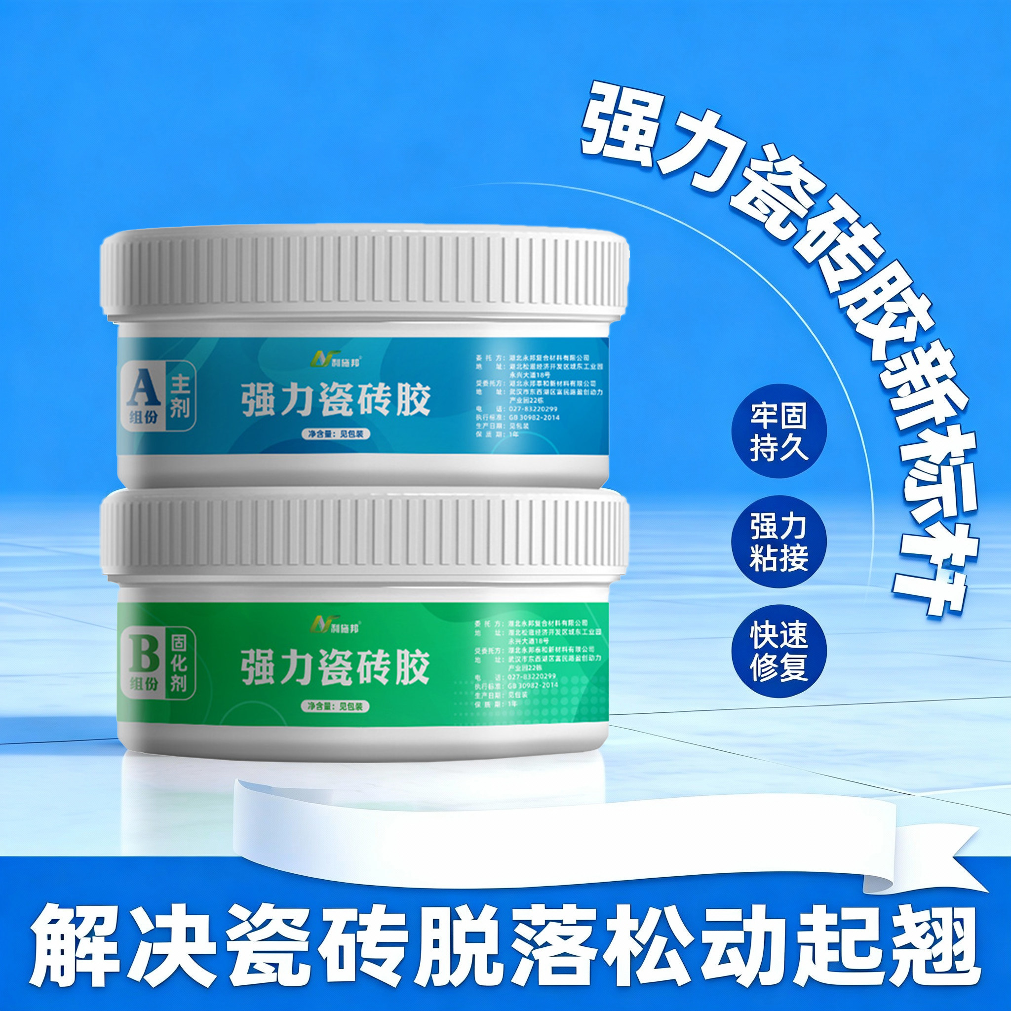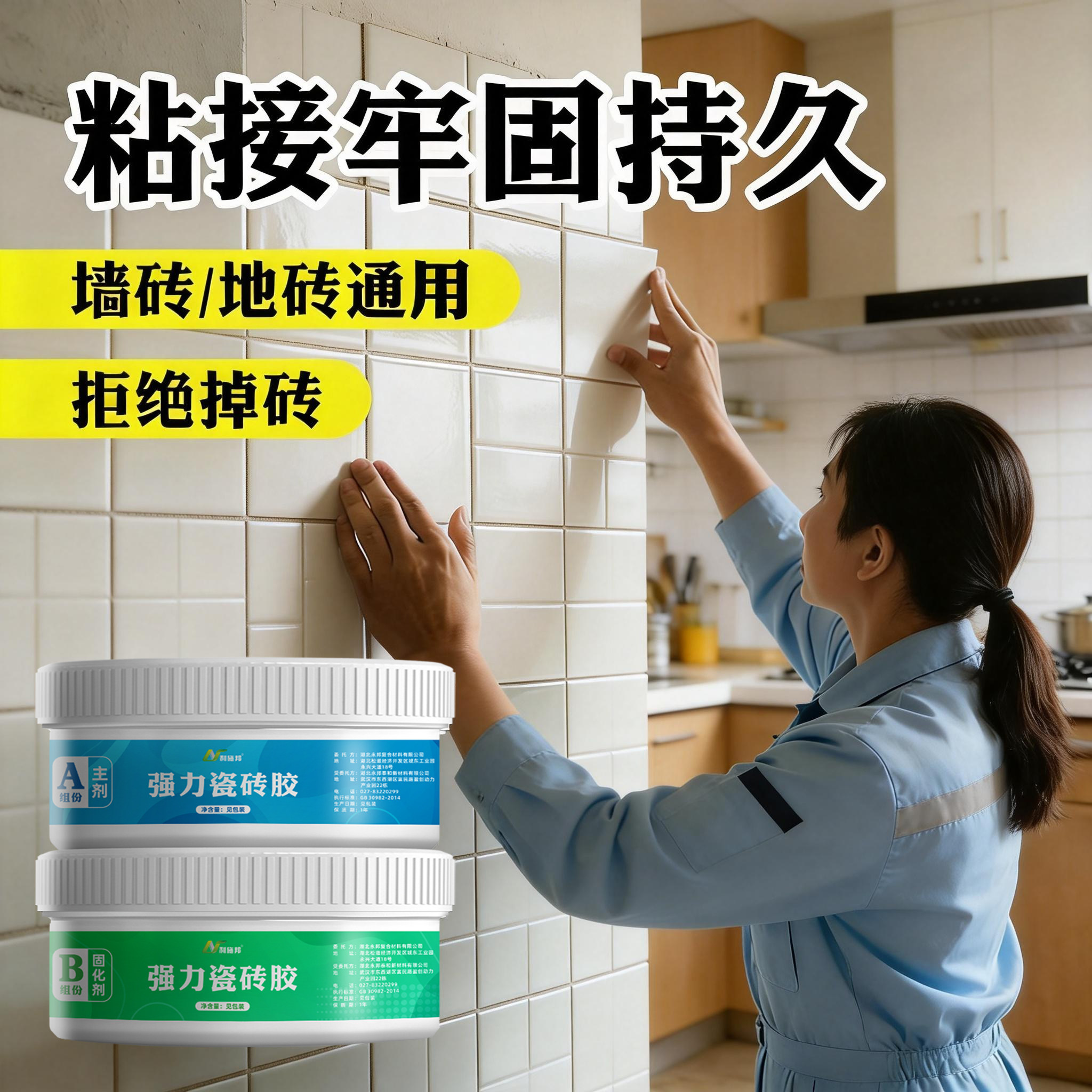 双组份瓷砖胶起翘脱落破损修复强力粘接持久牢固粘贴瓷砖专用胶