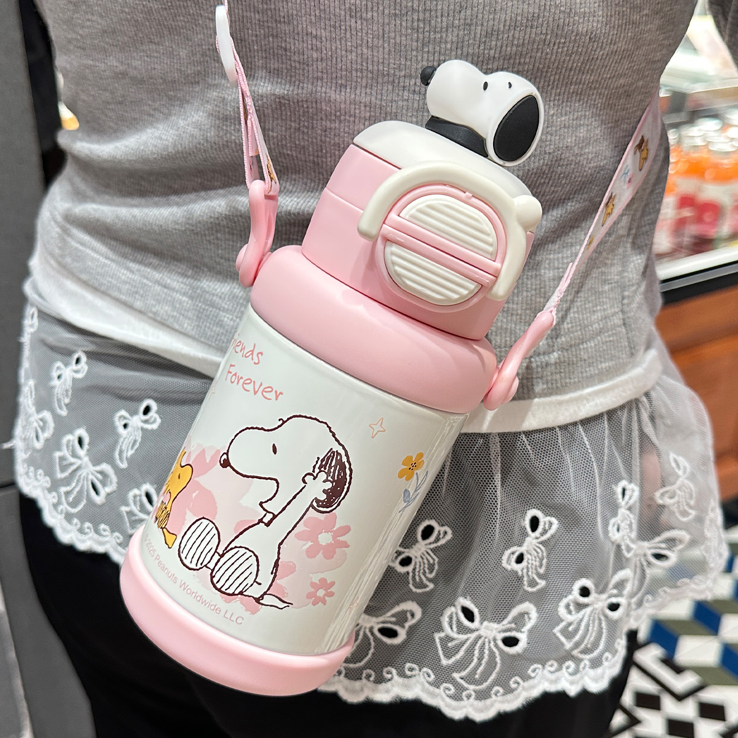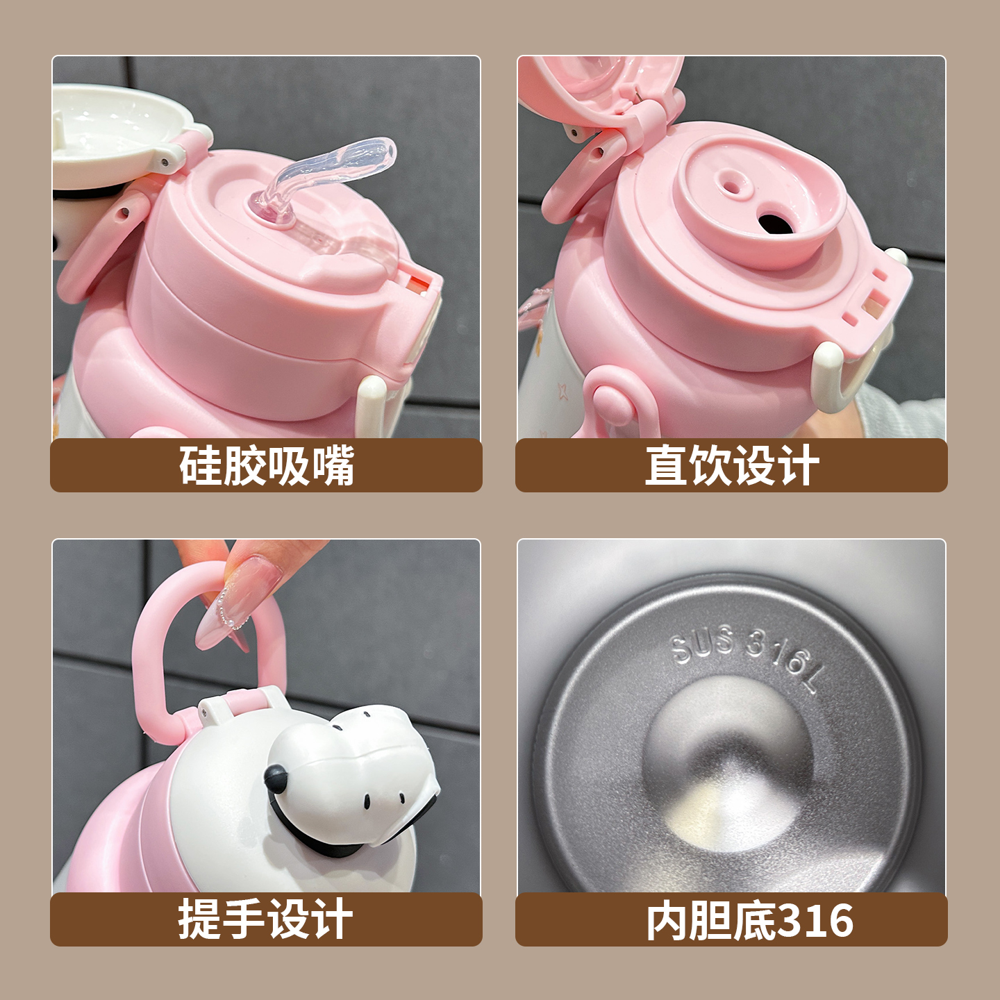 史努比儿童保温杯2025新款男女孩便携外出直饮水壶学生专用吸管杯