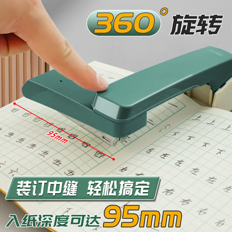 得力可旋转订书机学生用大号重型加厚钉书机家用型订书器办公用多功能省力迷你小号钉定厚书订中缝装订用品