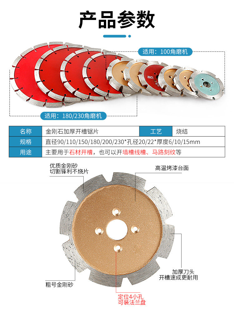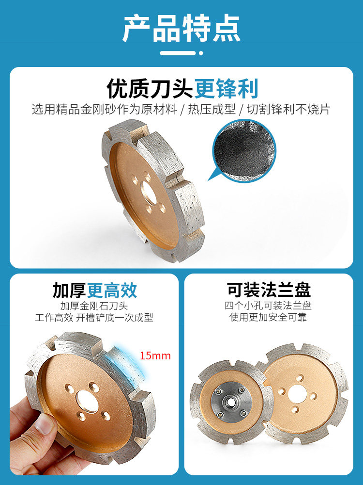 金刚石加厚锯片雕刻铲片石材墙槽混凝土开槽切割清底90打磨头工具