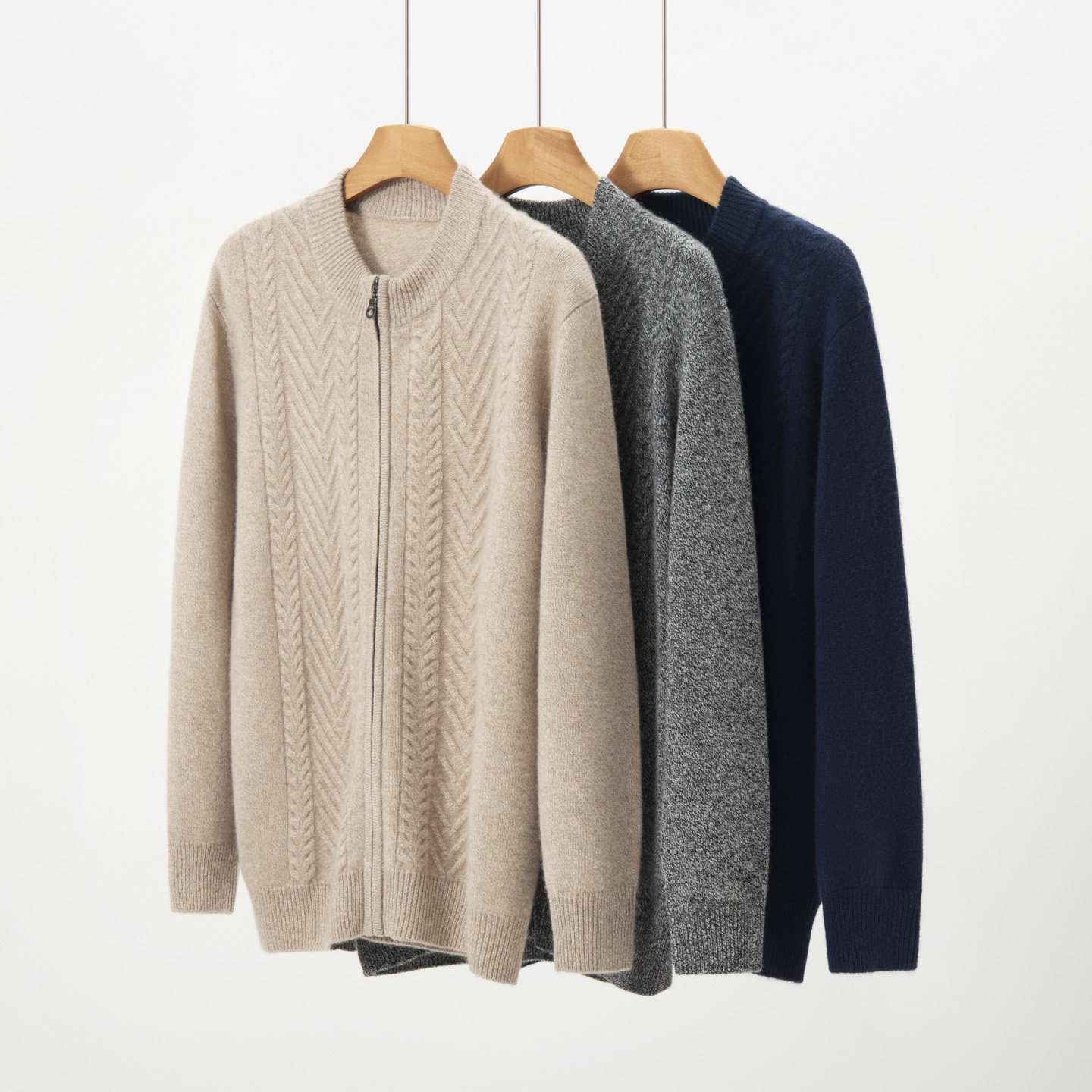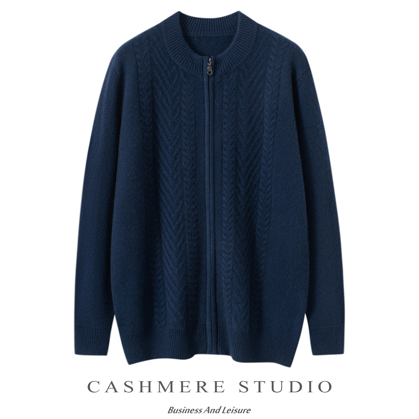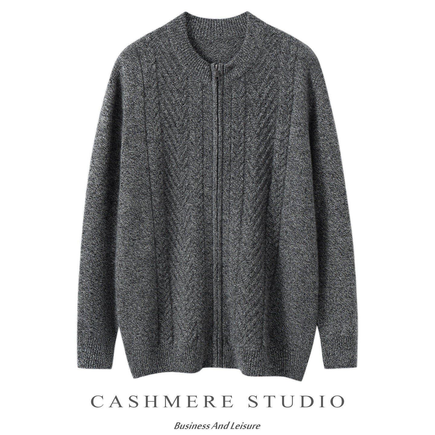 半高领拉链高端100%山羊绒开衫男款加厚针织扭花羊绒毛衣外套上衣