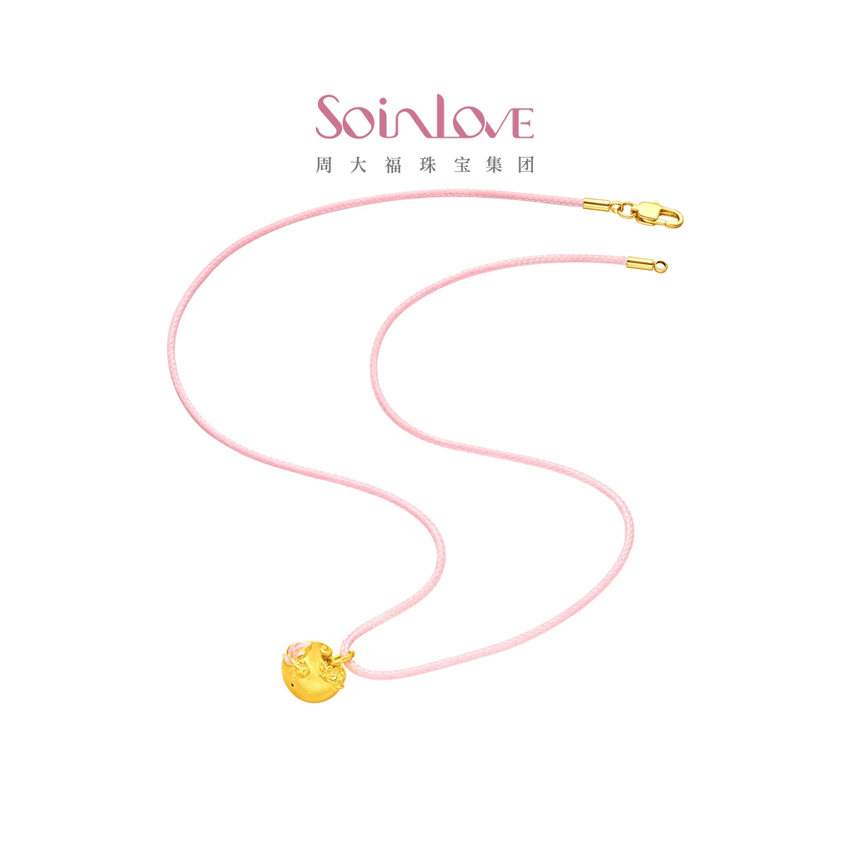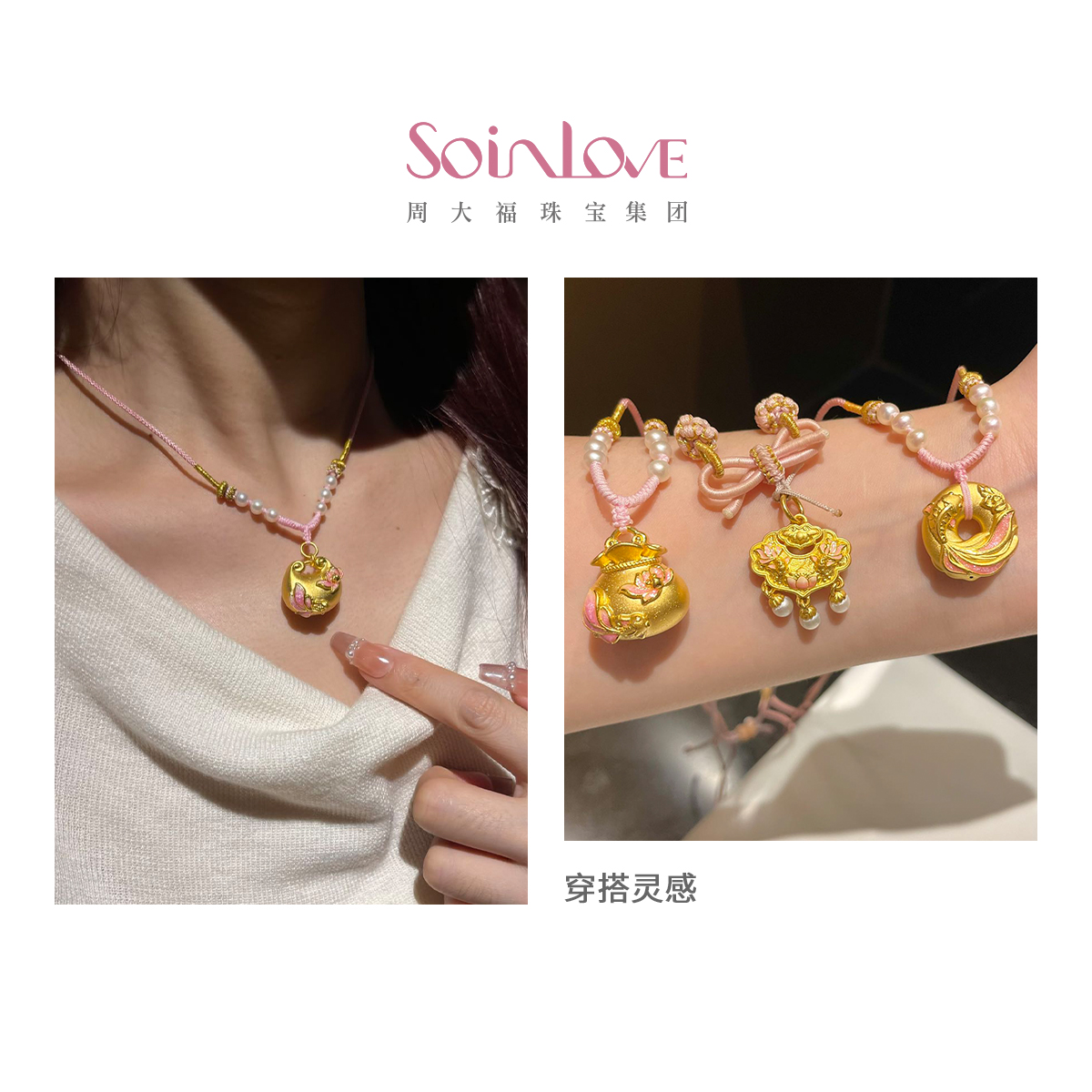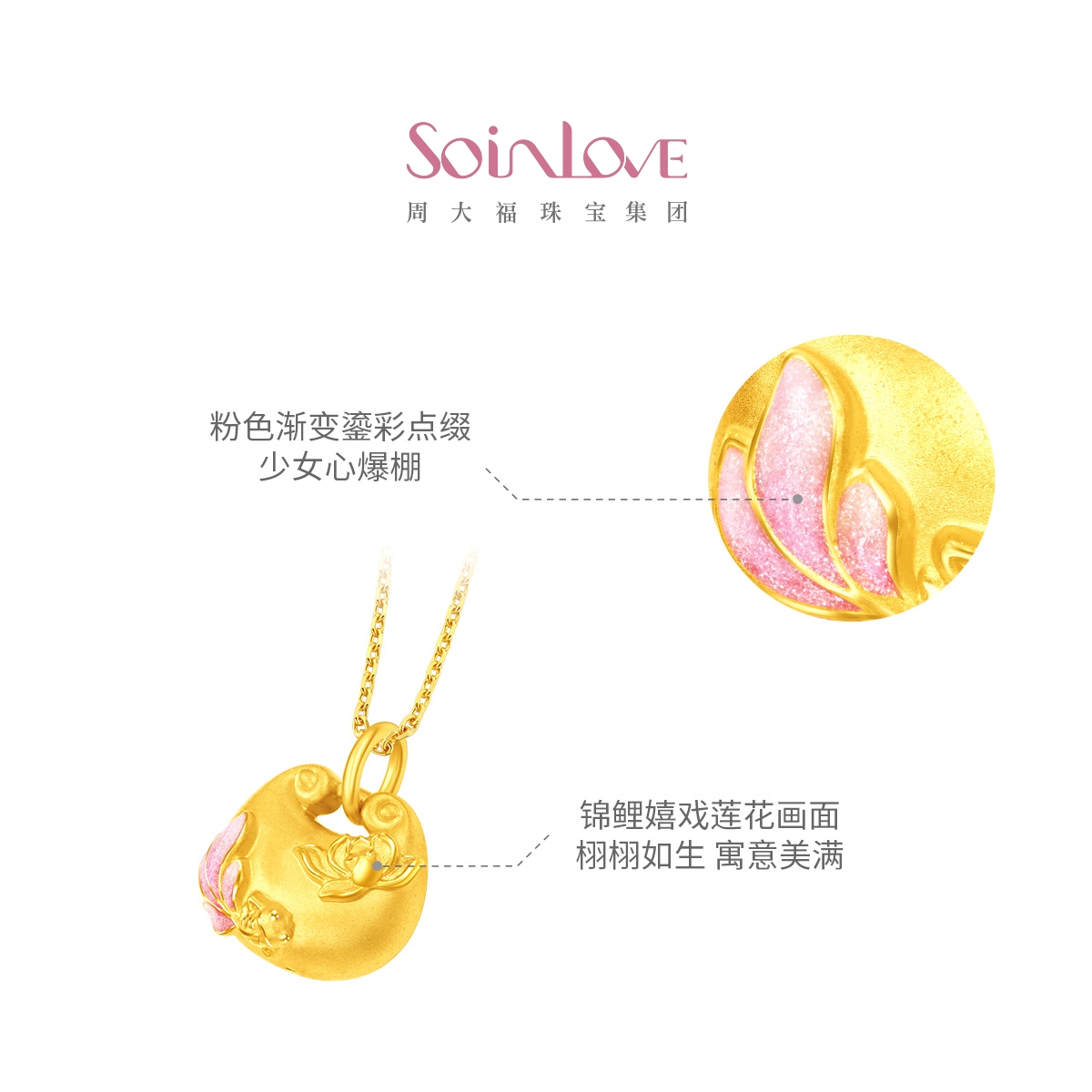 周大福SOINLOVE 十里红妆锦鲤戏莲胖福福袋黄金吊坠圣诞礼物