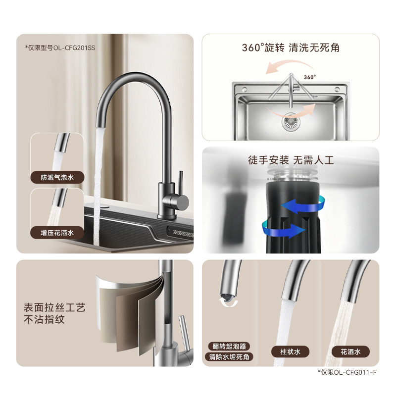 包拆装欧琳厨房水龙头单冷洗菜盆洗衣池水槽旋转增压防溅冷热龙头