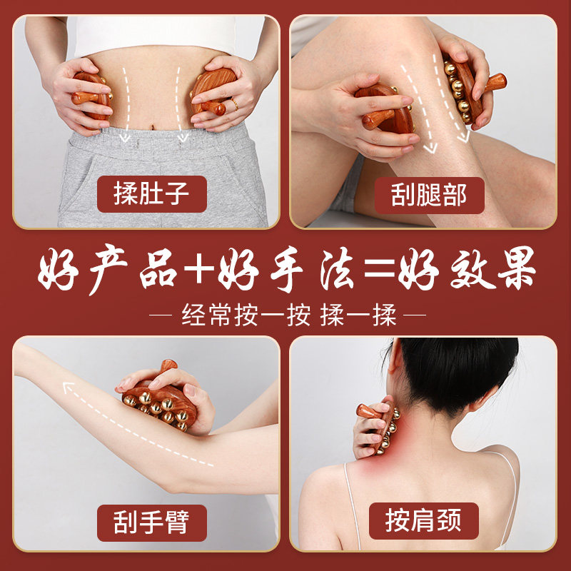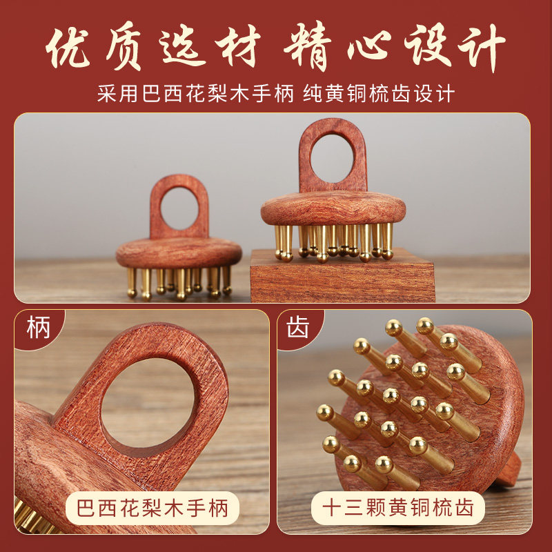 丰林纯黄铜梳头部经络梳指环按摩梳头皮洗头刷头刮痧器疗全身通用