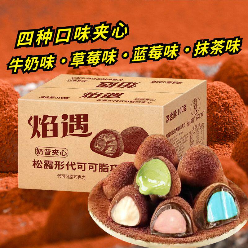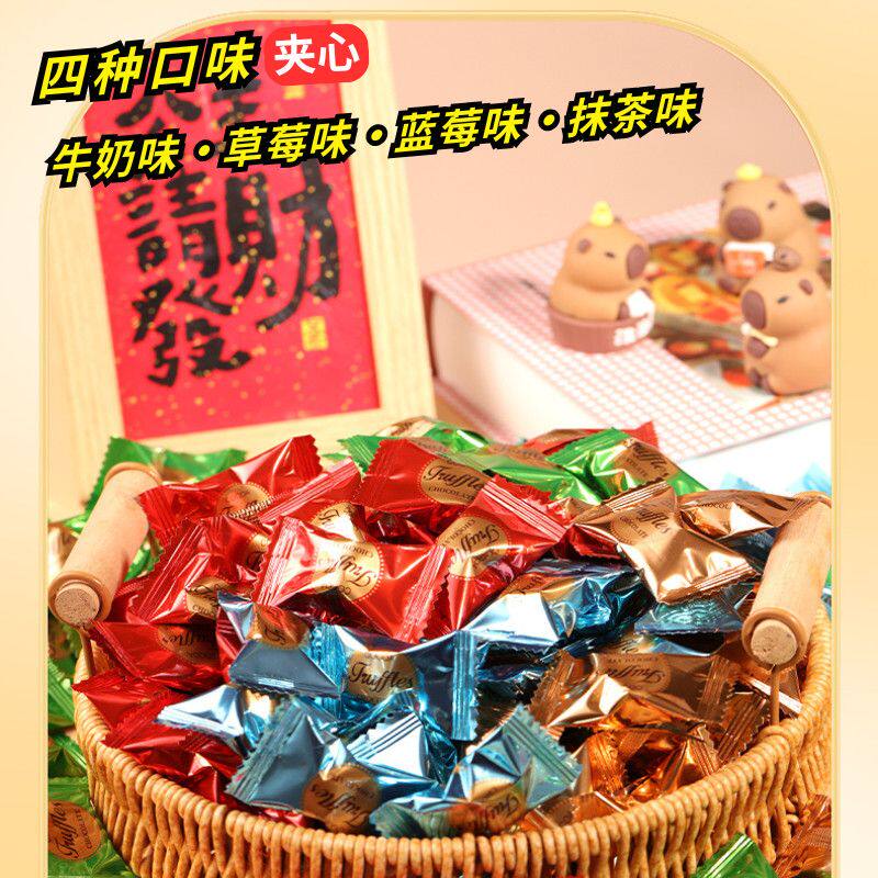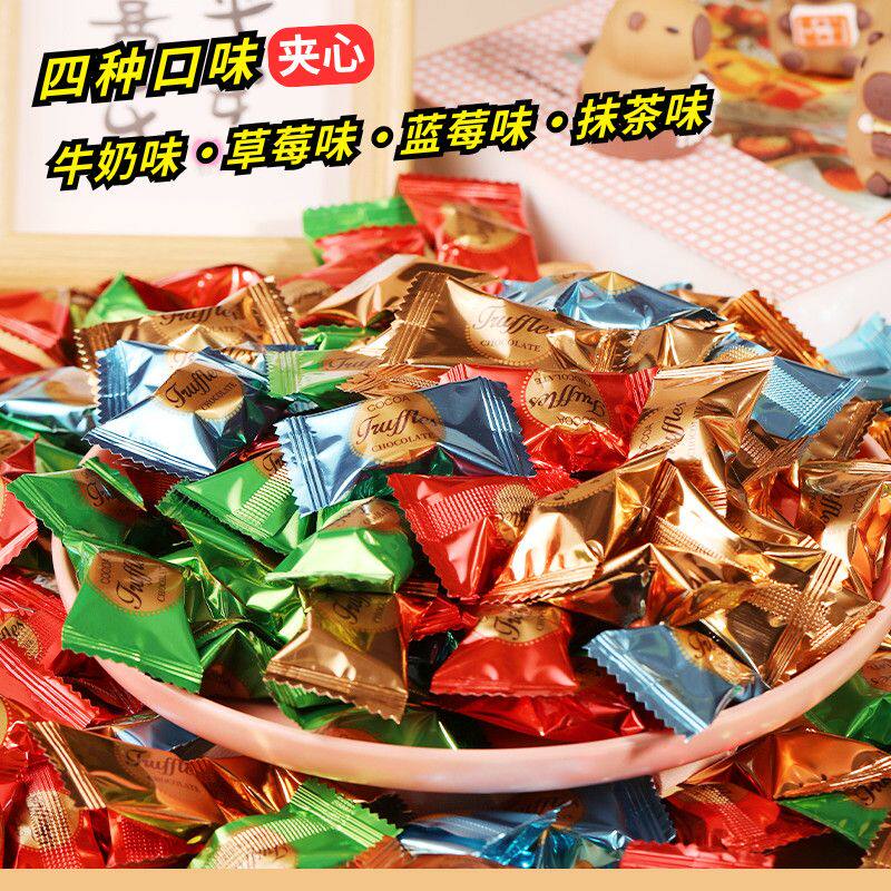 黑松露形巧克力夹心混合口味独立包装喜糖年货整箱装批发代可可脂