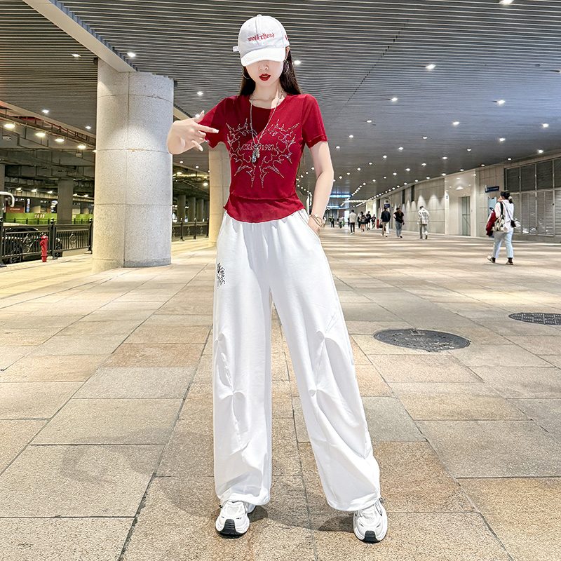 广场舞服装女2025新款夏季短袖T恤上衣阔腿裤嘻哈爵士舞表演套装