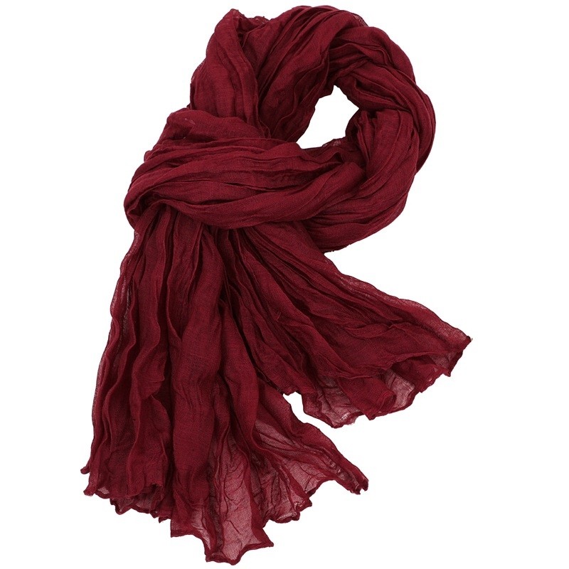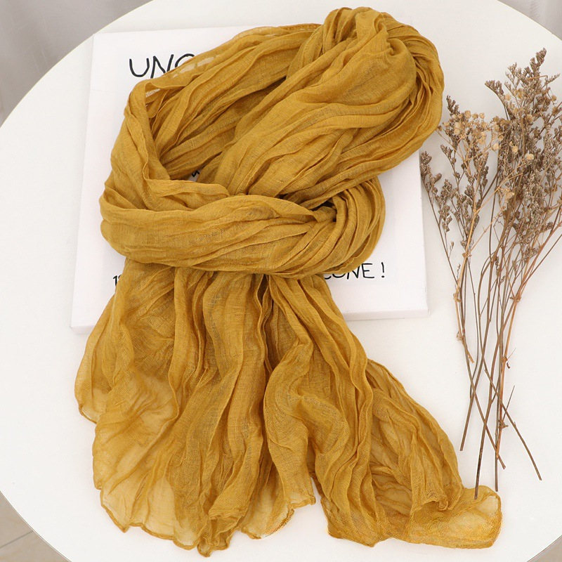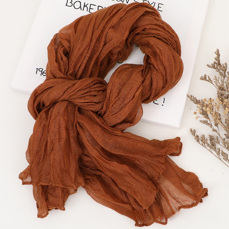 纯色棉麻褶皱围巾文艺复古丝巾女士秋冬百搭防寒围脖外搭防晒披肩