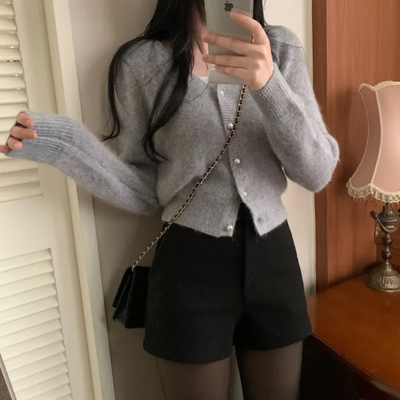 灰色毛呢高腰短裤女秋冬韩版显瘦直筒紧身呢子靴裤外穿打底三分裤