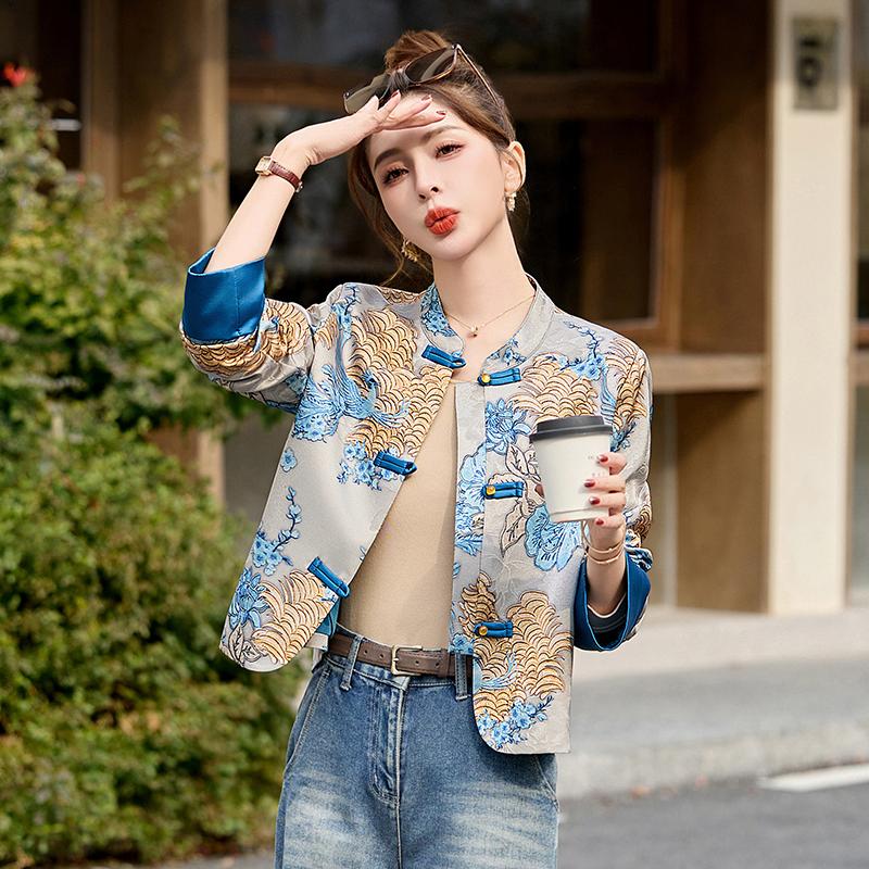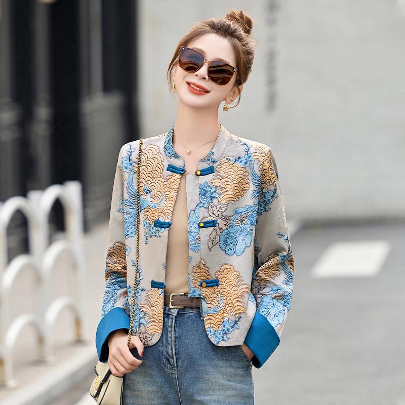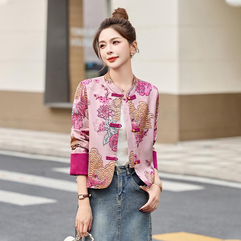 新中式轻国风盘扣短款外套女2025秋季新款高级感气质提花唐装上衣