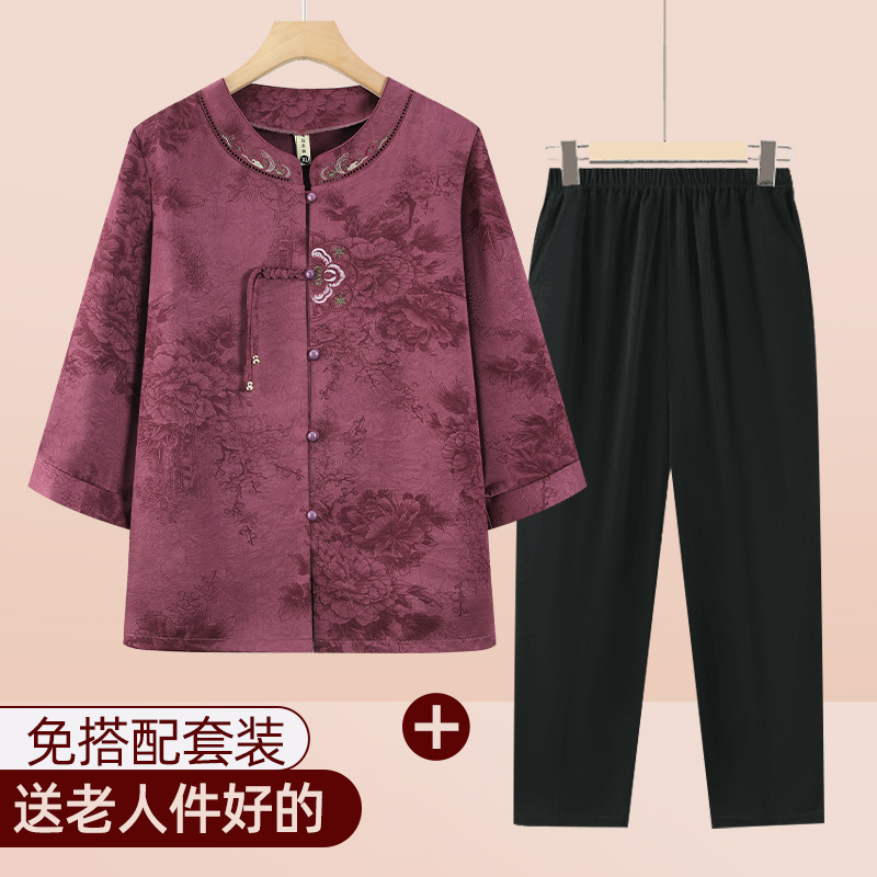 中年妈妈夏装新款夏季衬衫套装中老年女装短袖衬衣奶奶上衣服薄款