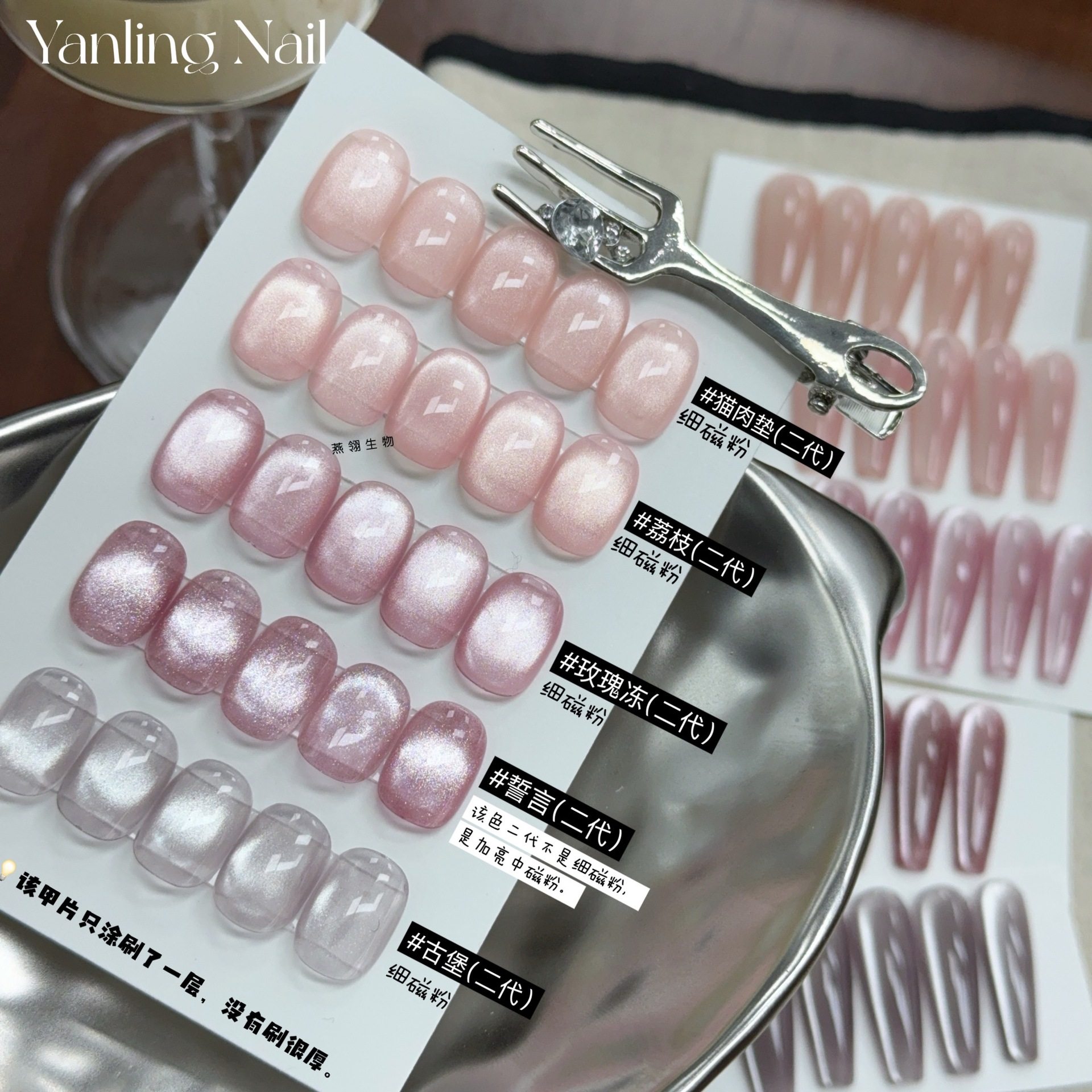 燕翎新款冰透裸色猫肉垫荔枝肉桂猫升级款细磁粉玻璃珠晶石猫眼胶