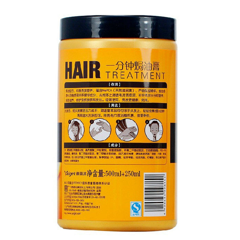雅丽洁一分钟焗油膏护发素750ml直免蒸倒膜发膜染烫修复 护理柔顺