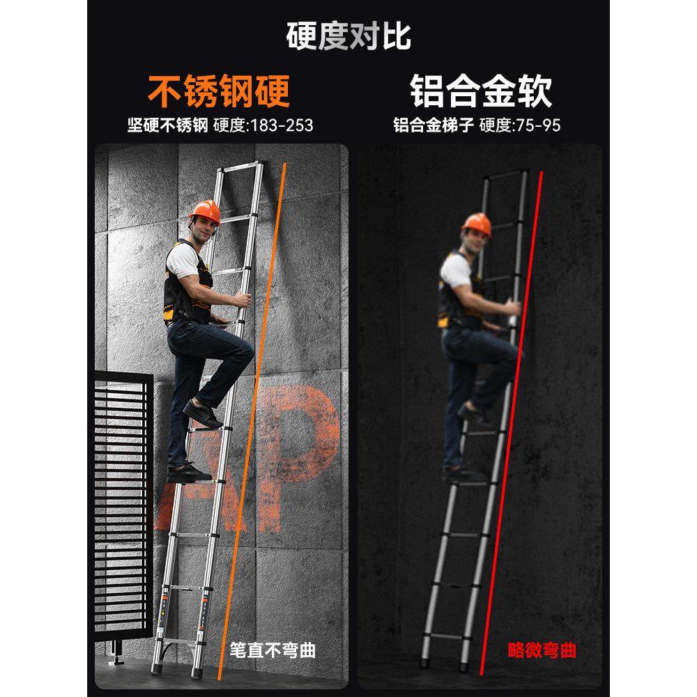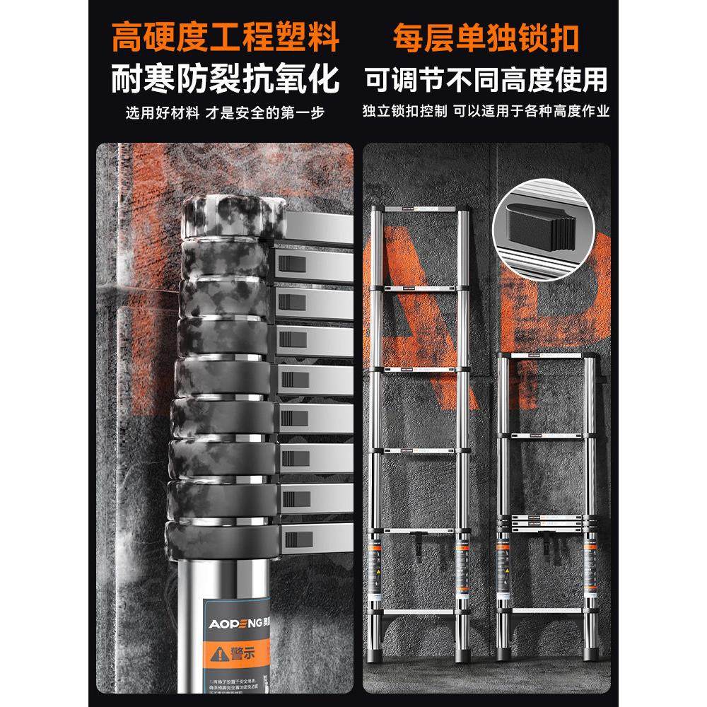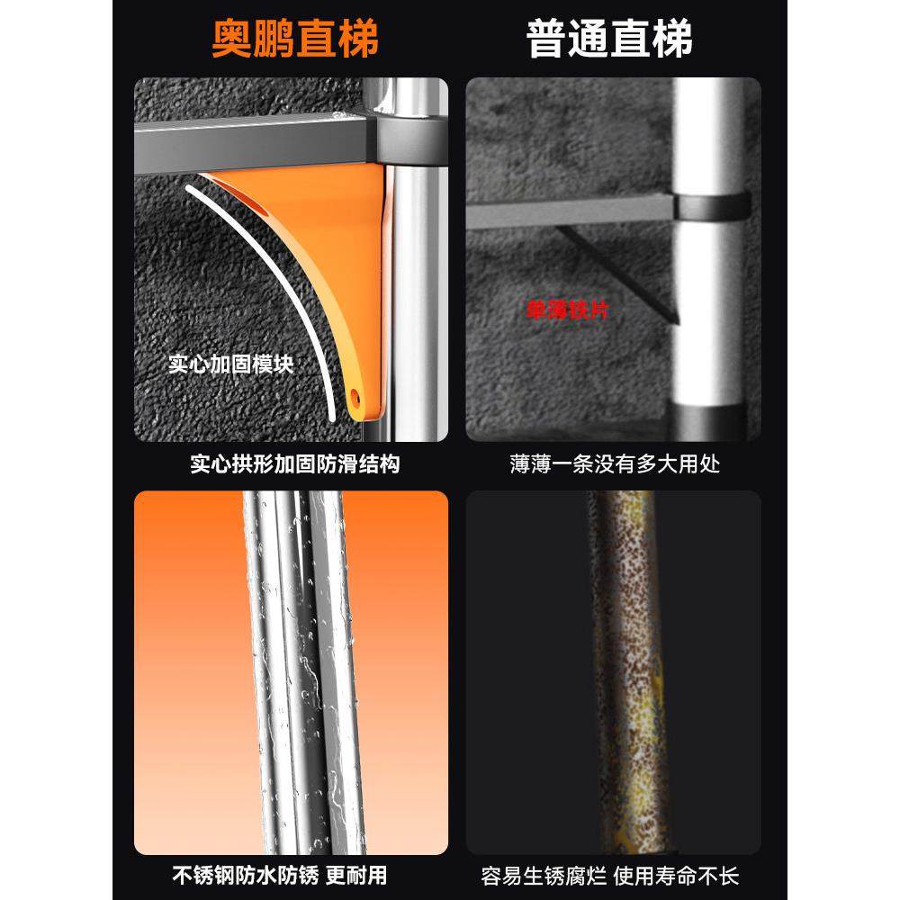 奥鹏伸缩梯子伸降工程不锈钢加厚直梯多功能便携家用折叠人字楼梯