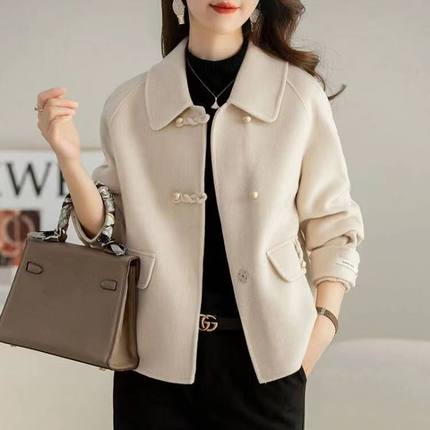 高档短款双面绒大衣外套女宽松大码妈妈装秋冬时尚双面羊毛呢外套