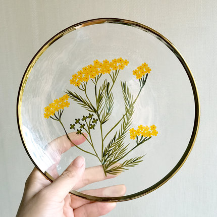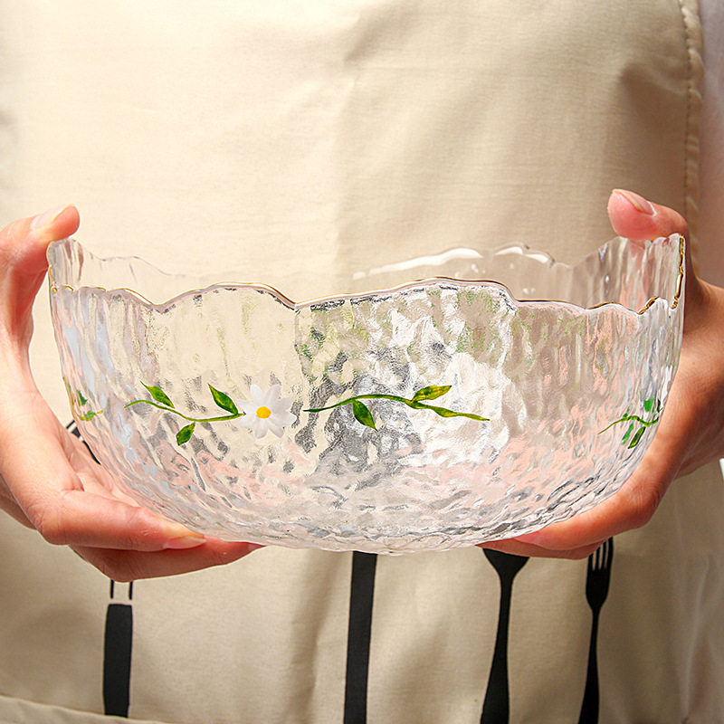 锤目纹玻璃水果盘雏菊家用沙拉碗手绘创意个性现代玻璃餐具冷纹盘