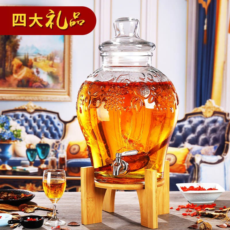 加厚泡酒玻璃瓶带龙头10斤2w0斤泡酒专用酒瓶密封泡酒罐子酒桶家