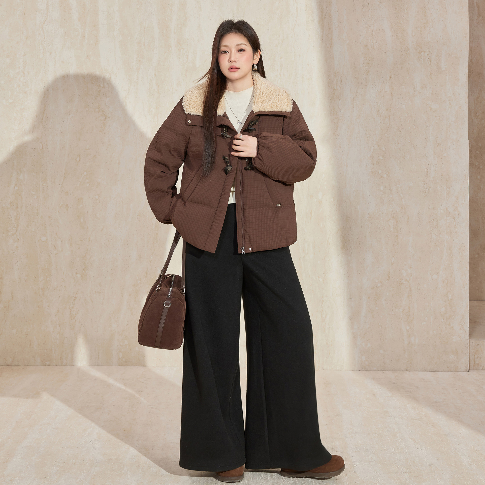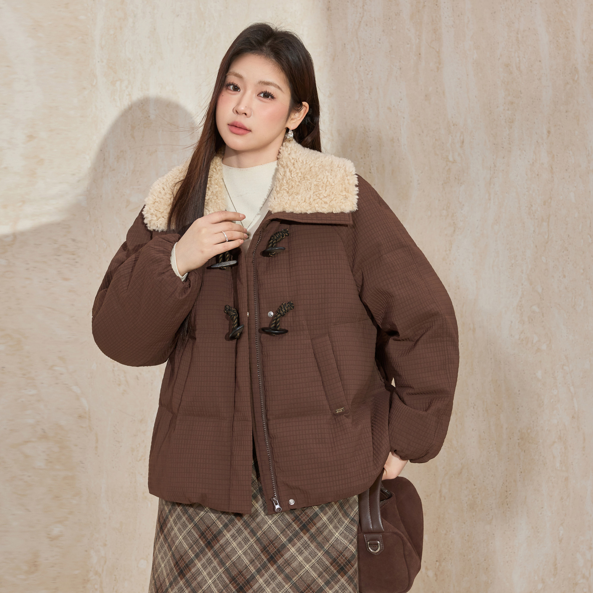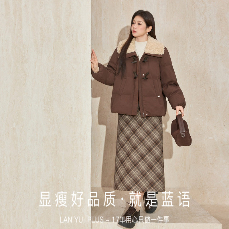 蓝语大码美拉德环保毛领90白鹅绒羽绒服2025冬季新款加厚保暖外套