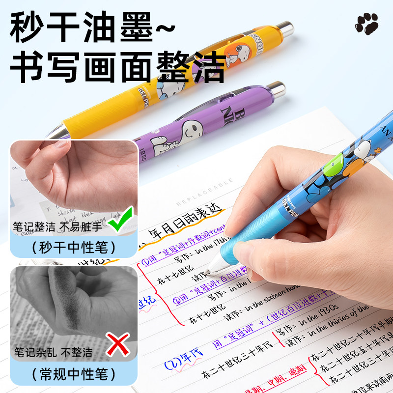 正版联名史努比限定笔高颜值ins风中性笔ENERGE速干0.5mm黑色按动水笔颜值高又好写的笔礼盒装同款派通旗舰店