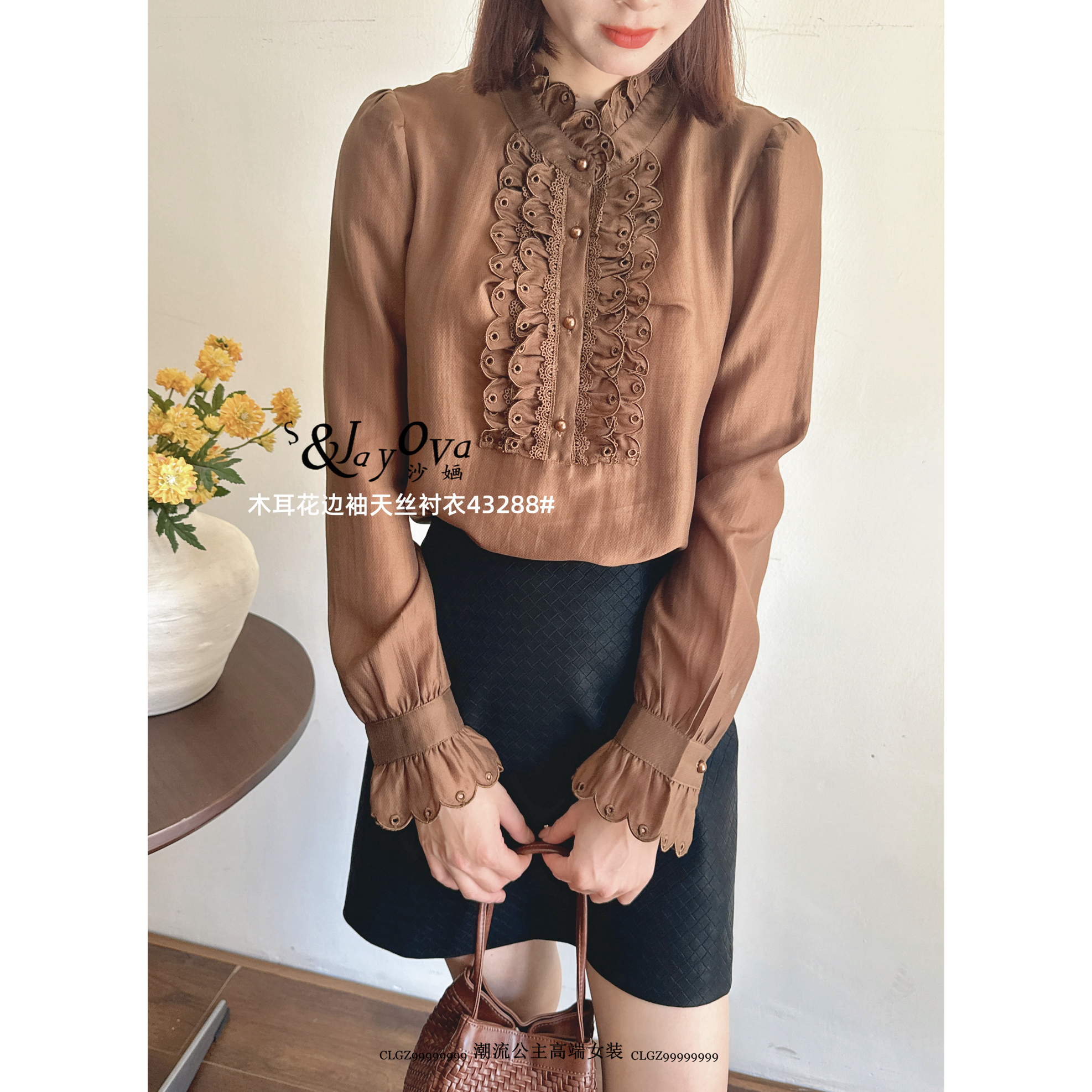 S&Jayova欧韩站2025新款女装秋冬43288甜美木耳领花边长袖衬衫