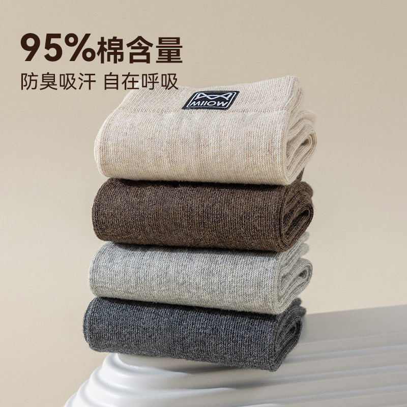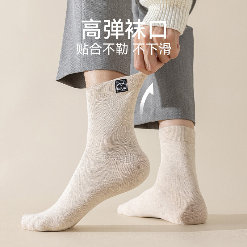 猫人男士纯棉透气秋冬季中筒袜