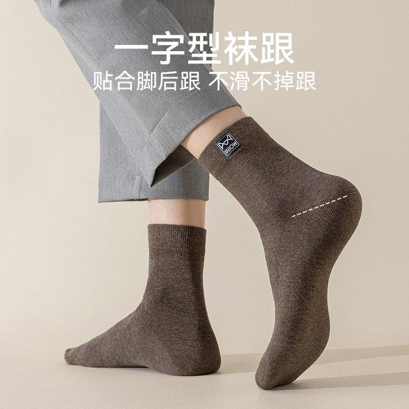 猫人袜子男士款纯棉中筒袜秋冬季抗菌吸汗透气黑色防滑长筒男棉袜